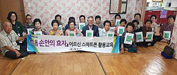 청도군(군수 이승율)은 지난 8월 13일 청도읍 고수3리 경로당에서 관내 어르신 30명을 모시고 세대 간 정보 격차를 해소하고자 스마트폰 활용교육을 실시했다.