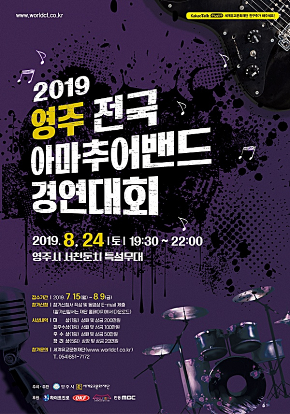 경북 영주시는 오는 8월 23일부터 24일까지 이틀간 서천둔치 특설무대에서 ‘2019 영주 블루스뮤직페스티벌 및 전국 아마추어밴드 경연대회’를 개최한다고 밝혔다.