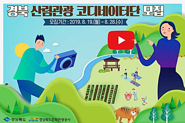 경상북도문화관광공사(이하 공사)는 오는 8월 28일까지 경상북도의 산림관광자원을 영상콘텐츠를 통해 홍보하는‘경북 산림관광 코디네이터단’을 모집한다고 밝혔다.