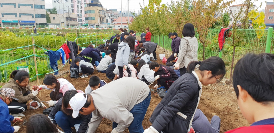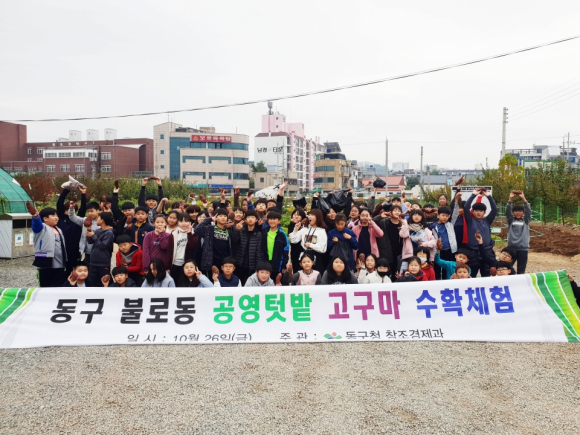 대구 동구에서는 자라나는 어린 아이들의 정서함양과 도시농업의 발전을 위하여 지난 26일 공영텃밭에서 불로초등학교 학생들을 대상으로 고구마수확체험을 실시했다.