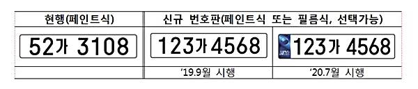 우리나라 자동차 등록대수가 지난해 말 2천300만대를 넘어 섬에 따라 현행 7자리 번호체계(비사업용 승용차)로는 등록번호 용량이 포화상태가 되어 번호체계를 8자리로 개편하게 되었으며, 이를 통해 총 2억 1천만 개의 등록번호가 추가 확보되어 반영구적으로 사용할 수 있게 된다.