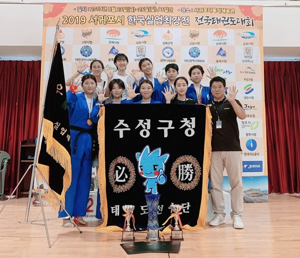수성구(구청장 김대권) 여자태권도 선수단은 지난 8월 23일부터 25일까지 제주 서귀포시 공천포전지훈련센터에서 열린 ‘2019 한국실업최강전 전국 태권도대회’ 여자 일반부 경기에서 금 3, 은 1, 동 2개를 획득해 ‘여자부 종합우승’의 쾌거를 이뤄냈다.
