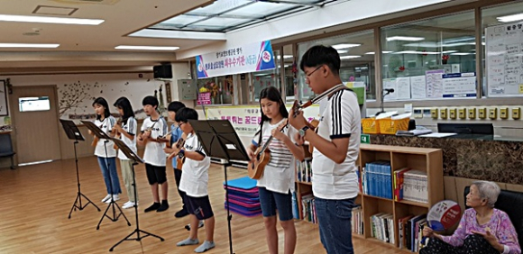 봉화군청소년지원센터 꿈드림(센터장 이양재) 학교 밖 청소년 10명은 지난 8월 29일 오전 11시 봉화효심요양원에서 ‘통통튀는 꿈드림 음악대 발표회’를 진행했다.