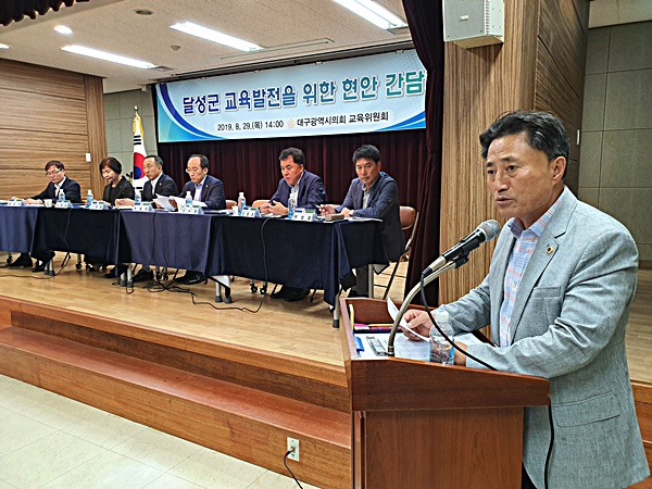 달성군 출신인 교육위원회 강성환 의원의 주재로 진행된 이번 간담회는 달성군 지역 중 학교수가 가장 많은 다사읍을 중심으로 인근 하빈면 소재 학교 21교를 대상으로 이루어졌으며, 달성군 지역 추경호 국회의원, 시의원, 군의원과 교육청, 시청, 달성군, 달성경찰서 등 관계기관 및 학교장, 학교운영위원, 학부모 150여 명이 모여 지역 교육 발전을 위한 열띤 논의를 펼쳤다.