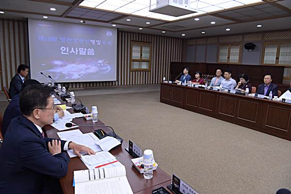 영천시 대표축제인 제16회 영천보현산별빛축제 평가 보고회가 최기문 영천시장, 박종운 시의회의장, 전민욱 축제위원장 등 30여명이 참석한 가운데 2일 시청 대회의실에서 열렸다.