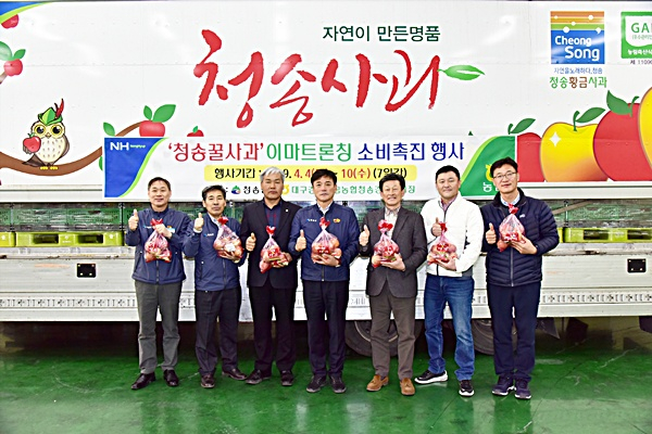 다음은 전국 146개 이마트에 청송사과를 납품하게 된 일이다. 청송 사과 판매를 위해 자칭 ‘세일즈 군수’가 되겠다며 임기 초부터 굳은 결의를 다졌던 윤 군수는, “전국 최고의 사과라는 타이틀에 만족하지 않고, 다양한 홍보 마케팅 활동과 유통시설 확충, 지속적인 브랜드 관리를 통한 대도시 대형마트로의 진출 등 다양한 판로를 개척하여 농가 수입창출에도 이바지할 것”이라고 언급한 약속을 지키게 됐다. 특히 동일 원산지 단일 품목으로 전국 이마트에서 동시에 특판 행사가 열리는 경우는 매우 드문 일로, 소비자들의 반응은 무척이나 뜨거웠다.