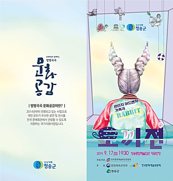 이번 공연은 청송군이 ‘2019년 문예회관과 함께하는 방방곡곡 문화공감사업’ 공모에 선정돼 진행하는 사업으로, 지난 7월 연극 ‘아들은 엄마의 나이를 모른다’, 8월 창작 오페라 ‘봄봄&아리랑난장굿’에 이은 마지막 공연이다.