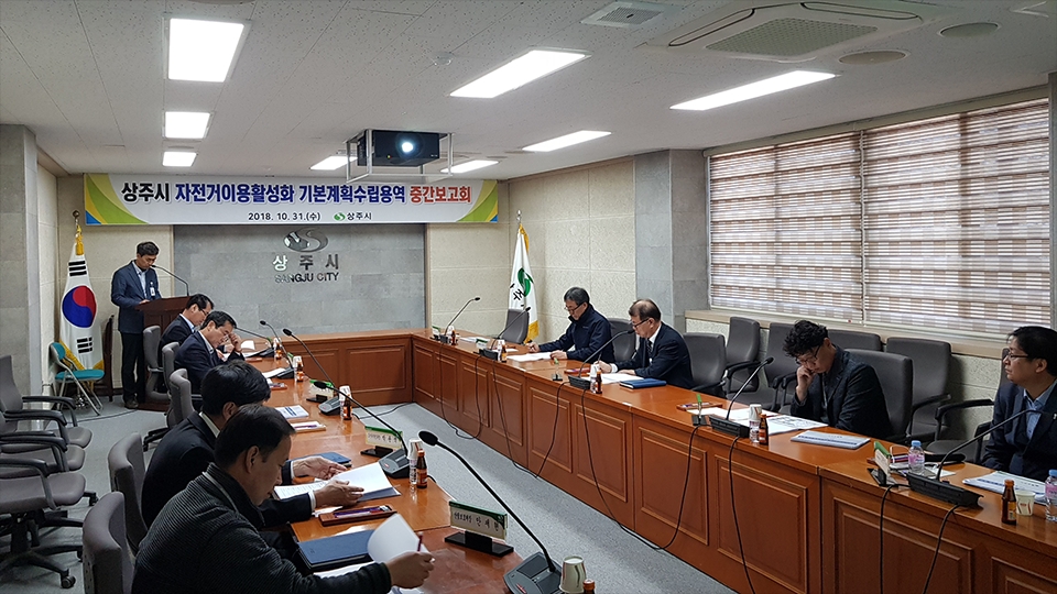 상주시(시장 황천모)는 10월 31일(수) 시청 소회의실에서 시의회 의원, 자전거연맹회장과 관계 공무원이 참석한 가운데 상주시 자전거이용 활성화 기본계획수립 용역 중간보고회를 개최했다.