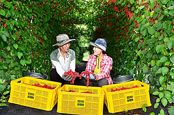 오미자축제를 앞두고 문경의 오미자재배농가들이 오미자수확에 한창이다.