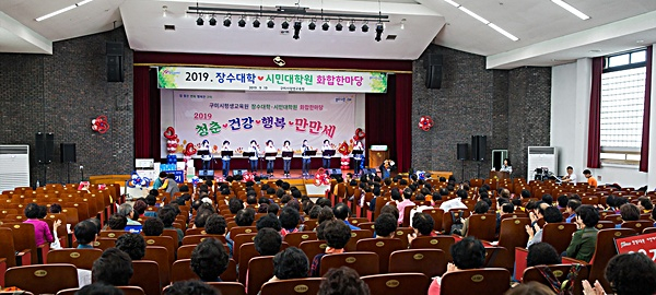 구미시는 9월 19일 평생교육원 대강당에서 개회식을 시작으로 장수대학 및 시민대학원 교육생 400여명이 참여한 가운데 ‘2019년 장수대학·시민대학원 화합한마당’ 행사를 성황리에 개최했다.