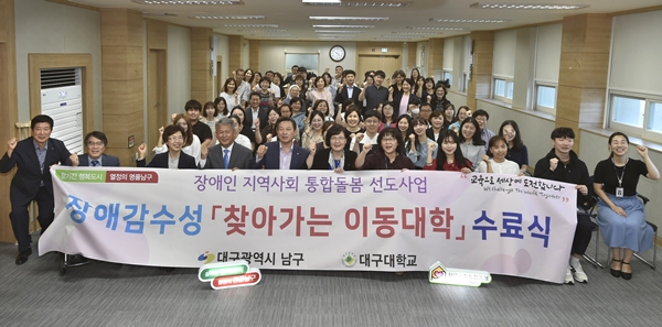 대구광역시 남구청(구청장 조재구)은 대구대학교(총장 김상호)와 공동으로, 지난 9월 19일 장애감수성 ‘찾아가는 이동대학’ 수료식을 개최했다.