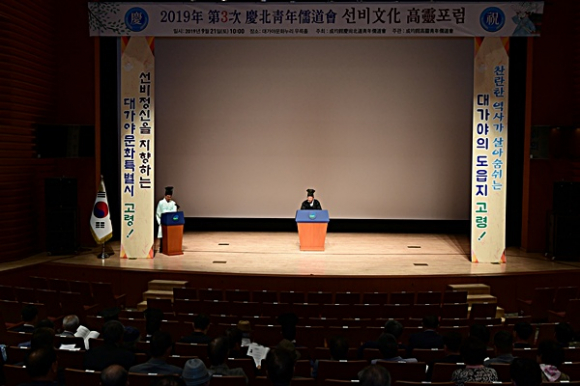 고령군 청년유도회(회장 문광주)에서는 지난 9월 21일 대가야문화 누리 우륵홀에서 경북 청년유도회 및 유림단체 회원 등 400여명이 참석한 가운데 경북 선비문화 고령포럼을 개최했다.