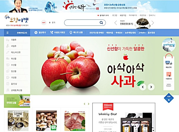 포항시가 운영하고 있는 온라인 쇼핑몰 ‘포항마켓’은 쌀, 사과, 버섯 등 농산물과 한우, 돼지고기 등 축산물, 오징어, 돌미역 등 수산물을 비롯한 포항지역에서 생산되는 가공식품 등 420여 품목을 판매하고 있다.