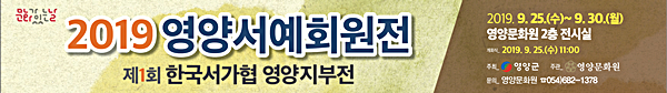 영양군(군수 오도창)에서는 영양문화원(회장 임시권) 주관으로 2019 영양서예회원전을 9월 25일부터 30일까지 6일간 영양문화원 2층 전시실에서 개최한다.