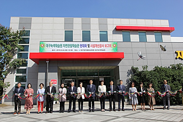 대구창의융합교육원(원장 장진주) 대구녹색학습원(대구농업마이스터고등학교 내)은 지난 9월 24일 배성근 부교육감을 비롯한 교육청 및 지역사회 관계자 30여명이 참석한 가운데 재개관을 위한 대구녹색학습원 자연관찰학습관 현대화 및 시설개선공사 보고회를 개최했다.