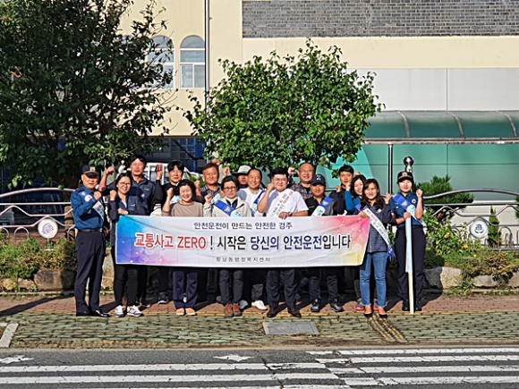 경주시 황남동행정복지센터에서는 지난 9월 24일 아침 경주공업고등학교 정문 앞에서 ‘교통사고 ZERO! 시작은 당신의 안전운전입니다’라는 슬로건으로 교통사고 줄이기 캠페인을 실시했다.