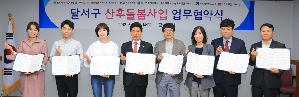 지난 5월 업무협약을 체결한 산후조리원은 꿈담?달서미즈맘?달서여성메디파크?디아나?성모여성?신미래?여성아이산후조리원 총 7개소이며, 조리원에서는 조리원 비용의 10% 정도를 할인하고, 나머지 이용료는 지역주민의 후원금으로 지원하게 된다.