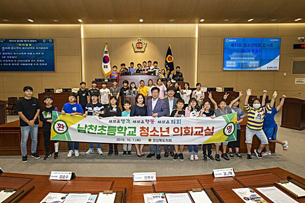 경상북도의회(의장 장경식)는 지난 10월 1일 도의회 본회의장에서 제35회 경상북도의회 청소년 의회교실을 개최했다. 이날 청소년 의회교실은 경산 남천초등학교(교장 성애주) 5~6학년 학생 36명과 지도교사 4명이 참석했으며, 경산출신 행정보건복지위원회 홍정근 의원이 행사에 참석하여 학생들을 맞이하고 격려했다.