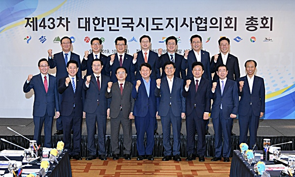 대한민국시도지사협의회(회장 대구광역시장 권영진)는 10월 4일 15시 30분 그랜드 인터컨티넨탈 서울 파르나스 호텔에서 시·도지사 16명이 참석한 가운데 제43차 총회를 개최한다.