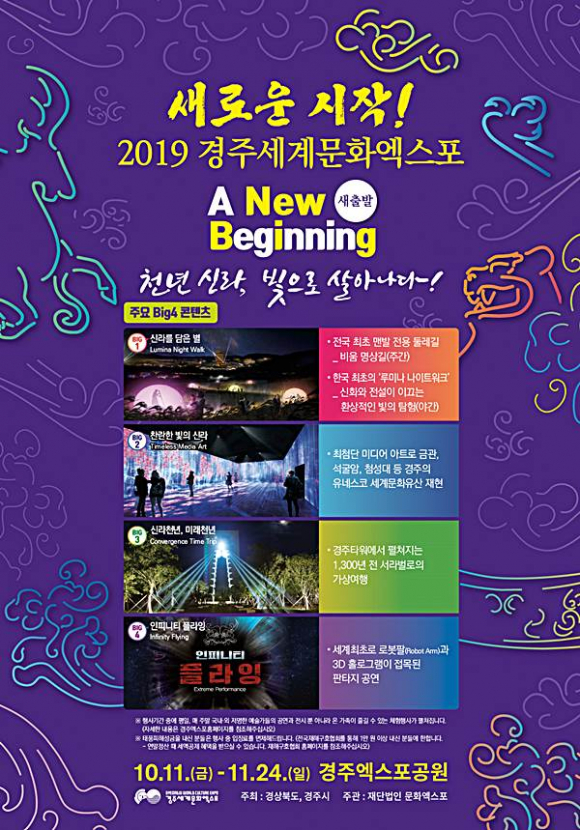 ‘2019경주세계문화엑스포’(이하 2019경주엑스포)가 10월 11일 오프닝행사를 시작으로 45일간의 대장정에 오른다.