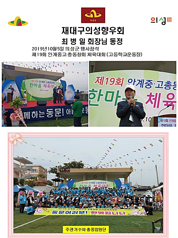 최병일 재대구의성향우회장은 지난 10월 4일과 5일 양일에 걸쳐 고향 의성을 방문, 여러 행사장을 찾았다.