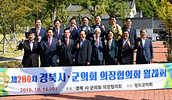 경북시·군의회의장협의회(협의회장 서재원)는 청도군의회(의장 박기호) 주관으로 10월 16일 오전 11시 청도신화랑풍류마을 다목적홀에서 제280차 월례회를 개최했다.