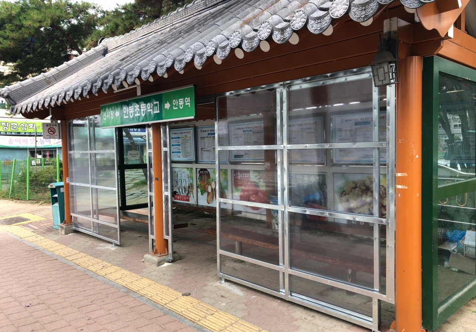 안동시 시내버스 승강장 비바람 가림막 설치