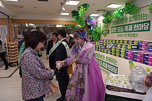 영천시(시장 최기문)는 지난 10월 17일부터 23일까지 롯데마트 전국 121개 전매장에서 영천포도 축제 한마당 특판행사를 실시한다.