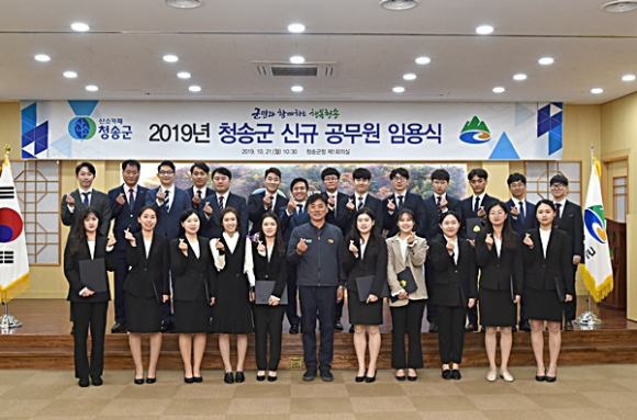청송군(군수 윤경희)은 지난 10월 21일 군청 대회의실에서 공직자로서 첫 발을 내딛는 신규 공무원들에 대한 임용식을 가졌다.