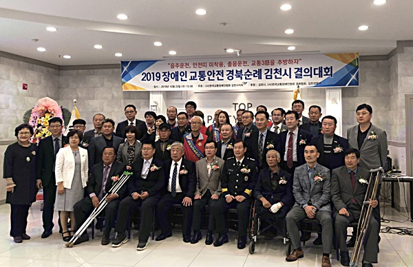 (사)한국교통장애인협회 김천시지회(회장 맹점수)은 지난 10월 23일 탑웨딩타운에서 ‘2019 장애인 교통안전 경북순례 김천시 결의대회’를 개최했다.