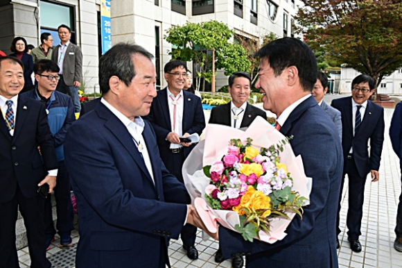 김천시와 대구광역시 동구는 지난 10월 24일 시청3층에서 김충섭 김천시장, 배기철 동구청장과 양도시 기관단체장, 간부공무원, 대구시 동구 향우회원 등 120명이 참석한 가운데 자매결연식을 체결했다.