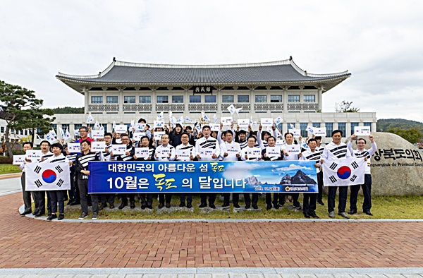 경상북도의회(의장 장경식)는 지난 10월 24일 도의회 전정에서 장경식 의장, 조주홍·박태춘 의원, 의회사무처 직원 등 100여명이 참석한 가운데 ‘10월 독도의 달’ 홍보 행사를 가졌다.