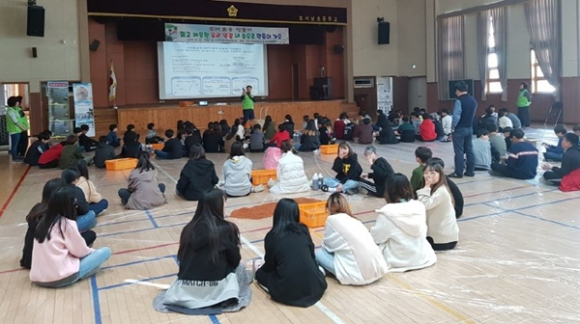 (사)문경환경항공감시단(단장 김학환)은 10월 28일 호서남초등학교 실내체육관에서 호서남초등학교 5~6학년 150여 명을 대상으로 ‘E․M(유용미생물)을 이용한 흙공 만들기 체험행사’를 가졌다.