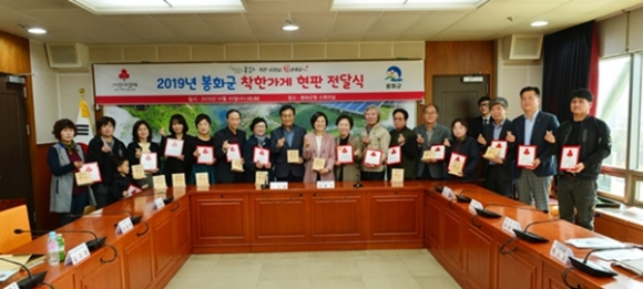 착한가게는 중·소규모의 자영업 등에 종사하며 매월 일정액을 기부하는 따뜻한 가게를 의미하며, 봉화군 사랑의 열매 나눔봉사단의 홍보와 착한가게 릴레이참여 결과로 29개의 착한가게가 신규로 가입했고, 이번 가입으로 봉화군은 총 39개의 착한가게가 기부에 동참하고 있다.