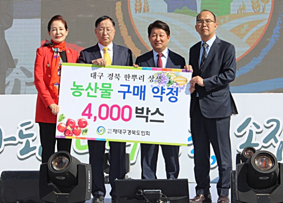 ‘하나된 대구경북, 손잡고 미래로’란 슬로건으로 지난 10월 31일 오전 11시 개최된 개막식에서는 시·도민 1,000여명이 참석한 가운데 조동희 재대구경북도민회장이 권영진 대구시장과 윤종진 경북도 행정부지사 등 대구·경북의 두 단체장에게 ‘대구·경북 농산물 구매 약정서’를 전달하고 앞으로도 지역 농산물 구매에 앞장설 것을 약속했다.