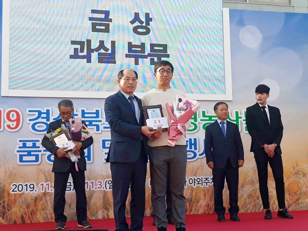 김천시 구성면에서 무농약으로 호두를 재배하는 이영인씨가 지난 1일부터 3일까지 대구 대백프라자에서 열린 ‘2019년 경북 친환경농산물 품평회’에서 과실부문 금상을 수상했다.