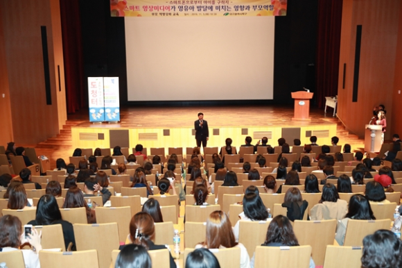 권장희 놀이미디어센터 소장의 ‘스마트 영상미디어가 영유아 발달에 미치는 영향과 부모역할’이라는 주제로 진행되었으며,어린이집 재원 아동을 둔 학부모를 대상으로 스마트폰의 유해성을 알리고, 올바른 사용법을 알려 스마트 미디어시대에 가정내 부모역할을 강화하기 위하여 마련됐다.