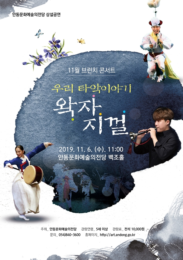 안동문화예술의전당 상설공연 11월 브런치 콘서트가 오는 6일 오전 11시 백조홀에서 전통 예술의 다양한 재미를 만끽 할 수 있는 ‘우리 타악 이야기 - 왁자지껄’로 진행된다.