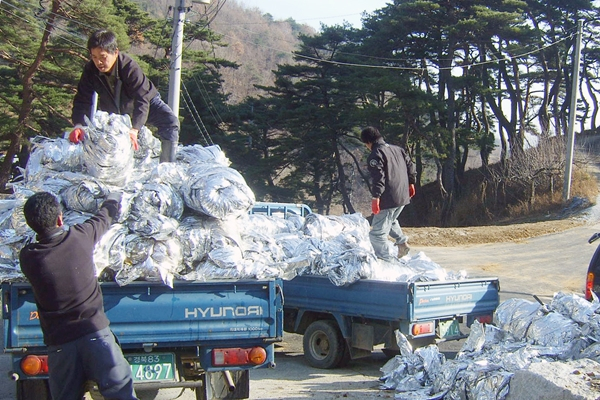 반입방법은 부피감소, 날림방지를 위해 포대에 담거나 압축해 묶어서 경작자 또는 마을단체에서 쓰레기매립장으로 직접 운반‧반입하면 된다.