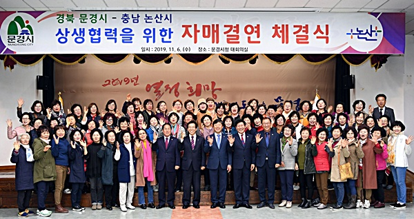 문경시(시장 고윤환)는 지난 11월 6일 문경시청 대회의실에서 충청남도 논산시(시장 황명선)와 자매결연 체결식을 진행했다. 이 날 행사는 양 기관의 의회의장과 시의원, 민간단체장들까지 참석해 대한민국 동서를 아우르는 뜻깊은 자매결연 체결식을 서로 간 축하했다.