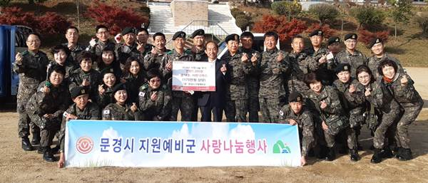 문경시지원예비군은 지난 11월 13일 점촌2동, 점촌3동, 점촌4동 가구를 지원하기 위해 문경시희망복지지원단에 연탄12,000장, 라면12박스, 쌀18포 등의 160만원 상당의 연탄과 생필품을 기탁했다.
