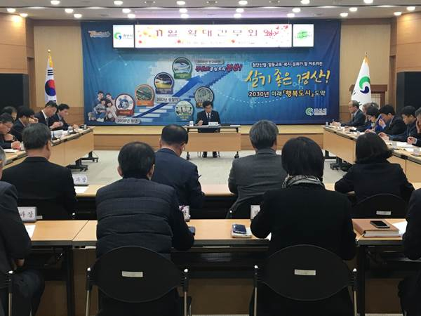 경산시는 지난 11월 18일 시청 대회의실에서 최영조 시장 주재로 국·소장, 담당관·단·과·소장 및 읍면동장 등 직원 60여 명이 참석한 가운데 11월 확대간부회의를 개최했다.