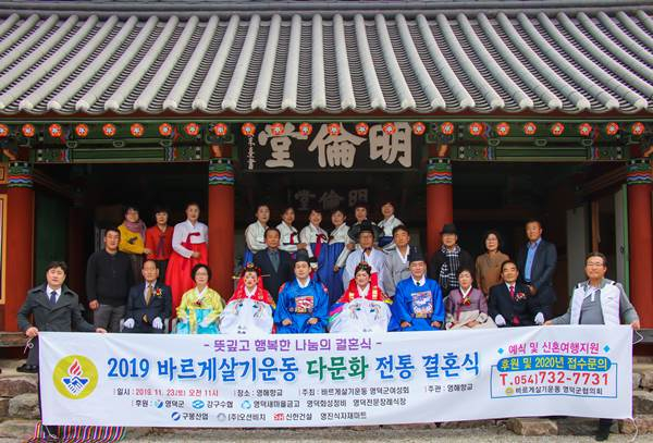 바르게살기운동 영덕군협의회는 지난 11월 23일 영해향교 명륜당 앞마당에서 다문화 부부 2쌍의 합동 전통혼례식을 개최했다.