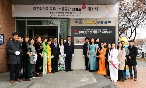 대구 동구는 다문화가족의 교류소통공간인 다가온(ON)을 개소했다. 다가온(ON)은 다문화가족의 성장과 지원을 위해 다문화가족들의 정보교환 및 커뮤니티를 활성화하고 지역주민과 자연스럽게 교류할 수 있는 공간으로 새롭게 마련되었다.