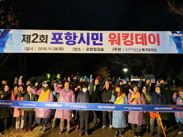 포항시 북구보건소는 지난 11월 28일 유성여자고등학교 맞은편 포항철길숲에서 시민 200여 명이 참석한 가운데 ‘제2회 포항시민 워킹데이’ 걷기행사를 개최했다.
