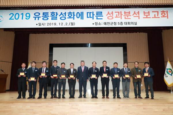 예천군은 지난 12월 2일 군청 대회의실에서 김학동 예천 군수와 농업관련 기관단체장 및 『예천장터』입점업체 등 100여 명이 참석한 가운데 2019년 유통활성화 성과분석 보고회를 가졌다.