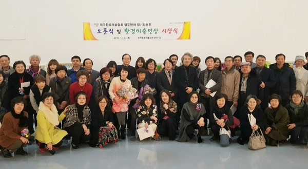오픈식에서는 ‘2019 환경미술인상’ 수상자인 조승형(59,(주)월드로 대표,화가), 배수아(현희)(45,대구환경미술협회 사무부국장·서양화가), 김호성(46,환경미술가)씨의 시상식도 있었다.