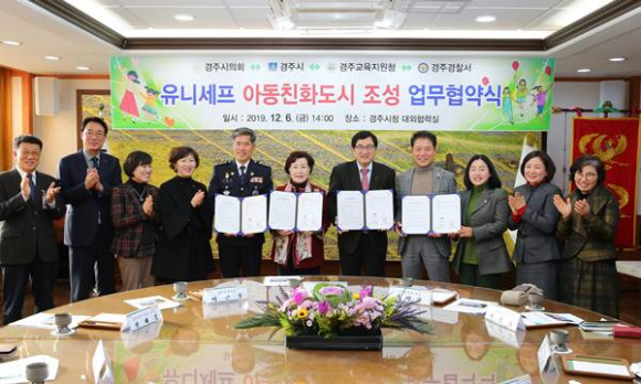 경주시는 지난 12월 6일 시청 대외협력실에서 아동친화도시 조성을 위해 경주시의회, 경주교육지원청, 경주경찰서 4개 기관과 업무협약을 체결했다.
