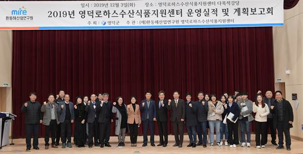 영덕로하스수산식품지원센터 운영실적 및 성과보고회가 지난 12월 3일 센터 다목적 강당에서 열렸다. 이희진 영덕군수, 김은희 영덕군의회 의장, 조주홍 경상북도의회 도의원, 허필중 경상북도 해양수산과장, 경상북도 경상북도 수산자원연구원 박성환 원장, 영덕군 해양수산과 관계자, (재)환동해산업연구원 임직원 등이 참석했다.
