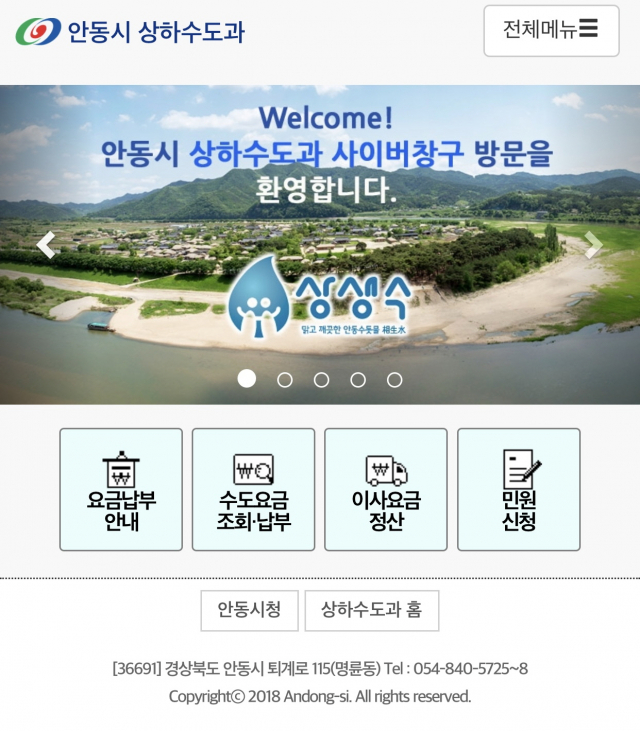 안동시는 올해 시민 편의를 위한 수도요금 납부체계 개선에 나서 모바일 사이버 창구를 도입하는 등의 괄목할 만한 성과를 냈다.